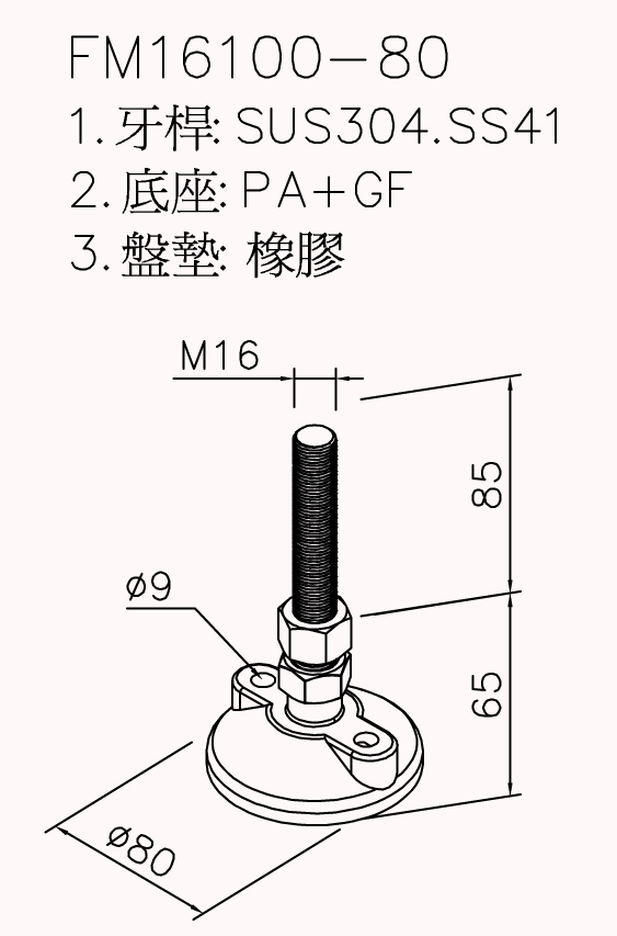 3. FM16100-80尼龍萬向腳座